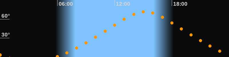 | Höchster Stand (Kulmination) | 15:11 Uhr (h = 71,6°) |