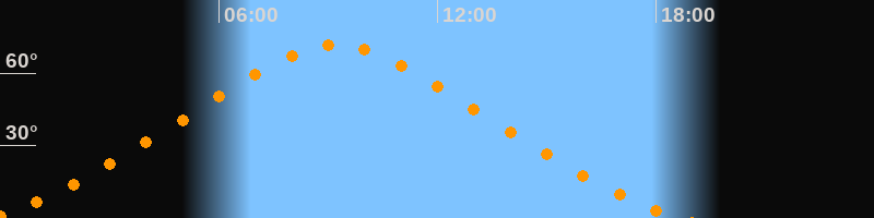 | Höchster Stand (Kulmination) | 09:13 Uhr (h = 71,6°) |