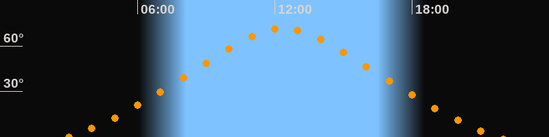 | Höchster Stand (Kulmination) | 12:23 Uhr (h = 71,6°) |