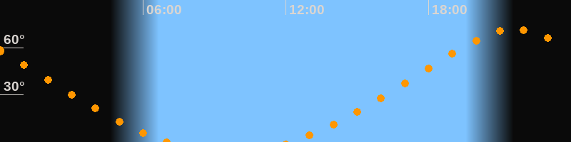 | Untergang | 07:08 Uhr im Nordwesten (αAz = 329°) |