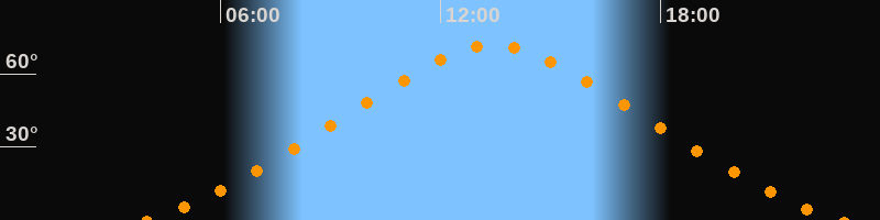 | Höchster Stand (Kulmination) | 13:27 Uhr (h = 71,6°) |
