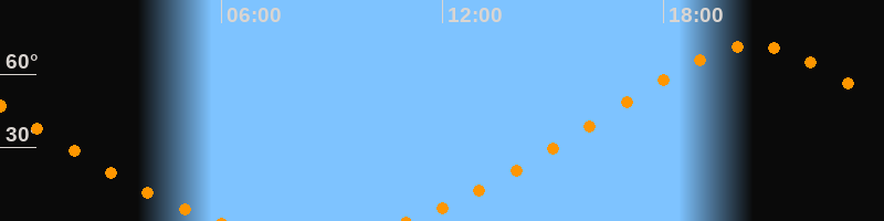 | Aufgang | 10:56 Uhr im Nordosten (αAz = 31°) |