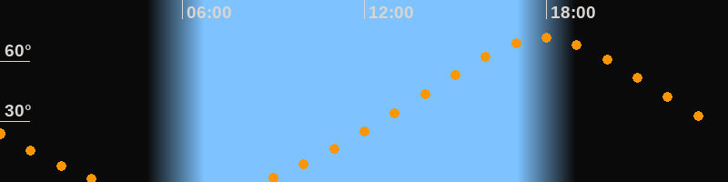 | Höchster Stand (Kulmination) | 17:55 Uhr (h = 71,6°) |