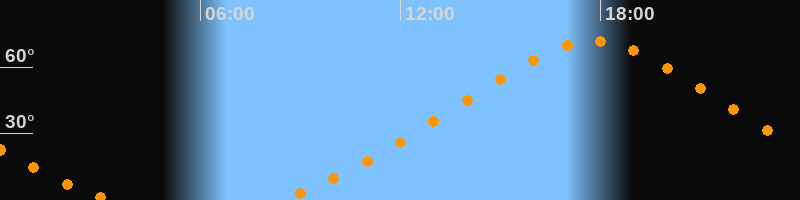 | Höchster Stand (Kulmination) | 17:47 Uhr (h = 71,6°) |