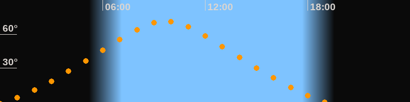 | Höchster Stand (Kulmination) | 09:40 Uhr (h = 71,6°) |