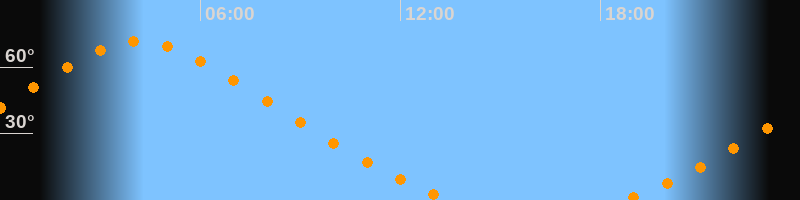 | Höchster Stand (Kulmination) | 04:09 Uhr (h = 71,6°) |