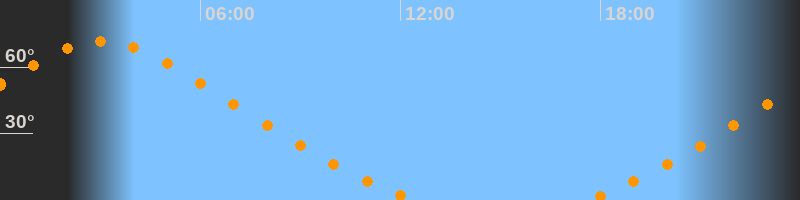 | Untergang | 12:31 Uhr im Nordwesten (αAz = 329°) |