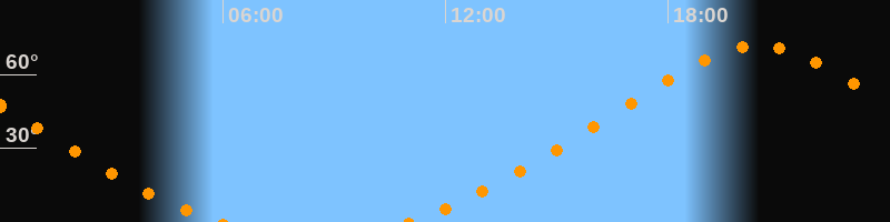 | Untergang | 05:58 Uhr im Nordwesten (αAz = 329°) |