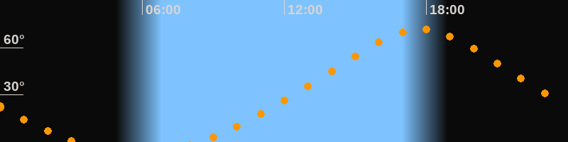 | Höchster Stand (Kulmination) | 17:45 Uhr (h = 71,6°) |