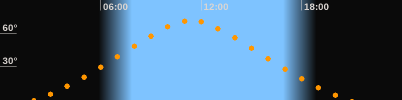 | Höchster Stand (Kulmination) | 11:24 Uhr (h = 71,6°) |