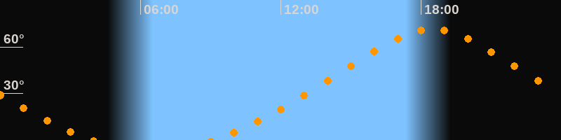 | Höchster Stand (Kulmination) | 18:29 Uhr (h = 71,6°) |