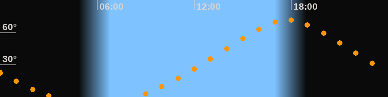 | Höchster Stand (Kulmination) | 17:47 Uhr (h = 71,6°) |