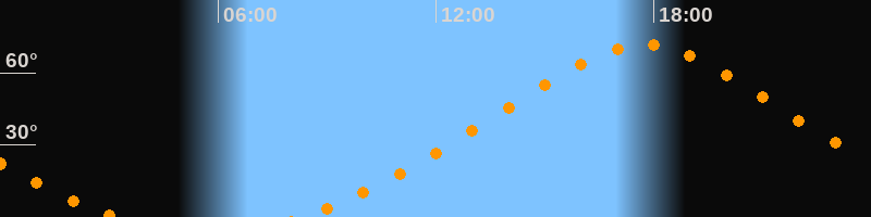 | Höchster Stand (Kulmination) | 17:43 Uhr (h = 71,6°) |