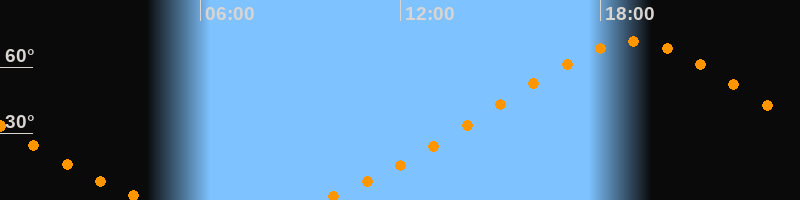 | Höchster Stand (Kulmination) | 18:59 Uhr (h = 71,6°) |