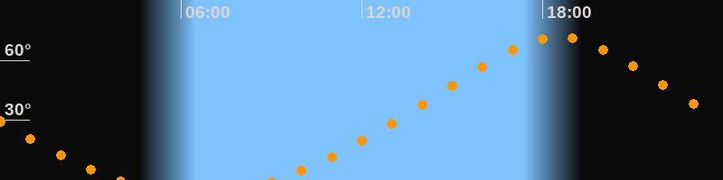 | Höchster Stand (Kulmination) | 18:31 Uhr (h = 71,6°) |