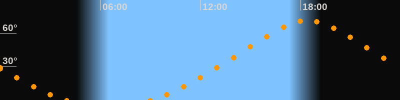 | Höchster Stand (Kulmination) | 18:27 Uhr (h = 71,6°) |