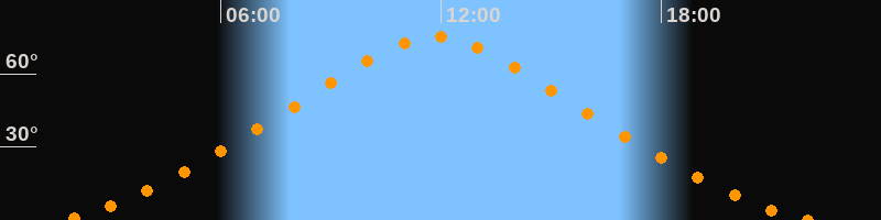 | Höchster Stand (Kulmination) | 11:50 Uhr (h = 75,1°) |
