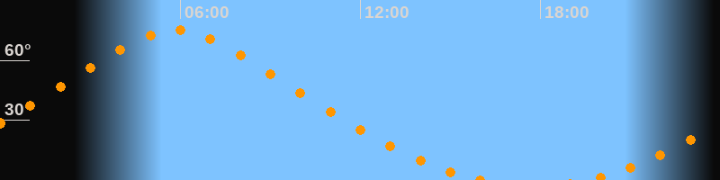| Höchster Stand (Kulmination) | 05:50 Uhr (h = 75,1°) |