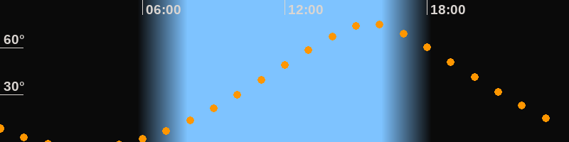Höchster Stand (Kulmination)15:35 Uhr (h = 75,1°)