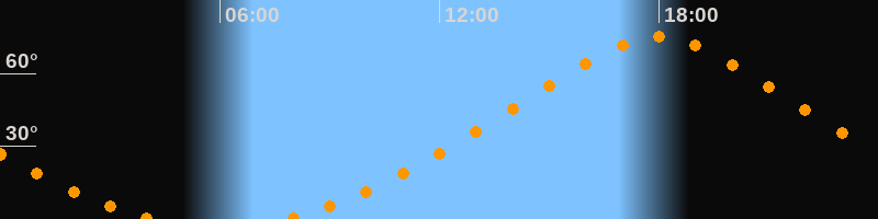 Höchster Stand (Kulmination)17:58 Uhr (h = 75,1°)