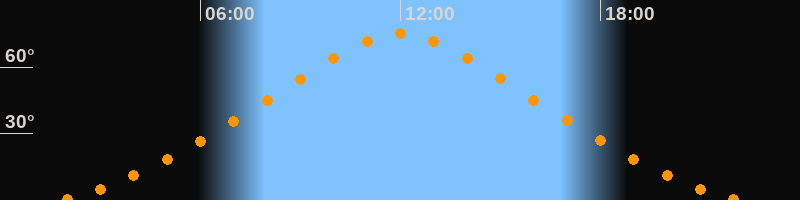 | Höchster Stand (Kulmination) | 12:00 Uhr (h = 75,1°) |
