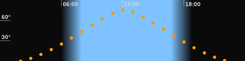 | Höchster Stand (Kulmination) | 12:10 Uhr (h = 75,1°) |