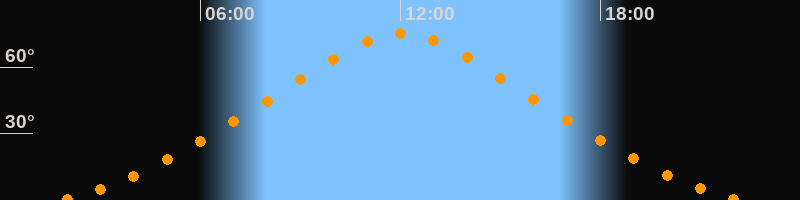 | Höchster Stand (Kulmination) | 12:02 Uhr (h = 75,1°) |