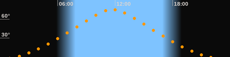 | Höchster Stand (Kulmination) | 11:43 Uhr (h = 75,1°) |