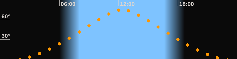 | Höchster Stand (Kulmination) | 12:23 Uhr (h = 75,1°) |