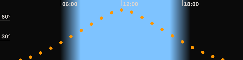 | Höchster Stand (Kulmination) | 12:04 Uhr (h = 75,1°) |
