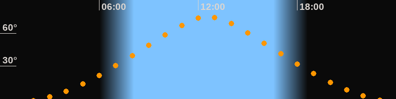 | Höchster Stand (Kulmination) | 12:35 Uhr (h = 75,1°) |