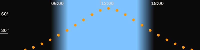 | Höchster Stand (Kulmination) | 13:00 Uhr (h = 75,1°) |