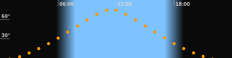 | Höchster Stand (Kulmination) | 11:30 Uhr (h = 75,1°) |