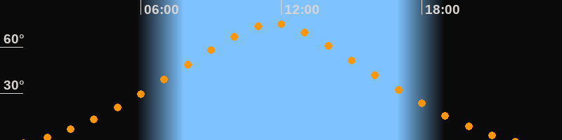 | Höchster Stand (Kulmination) | 11:39 Uhr (h = 75,1°) |