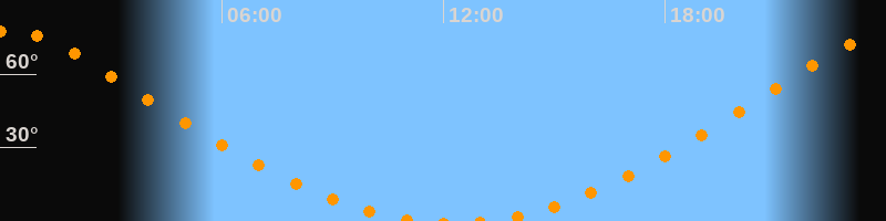 Höchster Stand (Kulmination)00:14 Uhr (h = 77,6°)