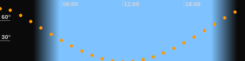 Höchster Stand (Kulmination)00:10 Uhr (h = 77,6°)