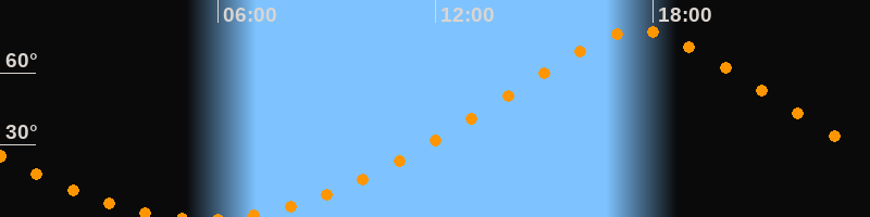 Höchster Stand (Kulmination)17:36 Uhr (h = 77,6°)