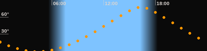 Höchster Stand (Kulmination)16:19 Uhr (h = 77,6°)