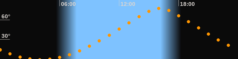 Höchster Stand (Kulmination)16:05 Uhr (h = 77,6°)