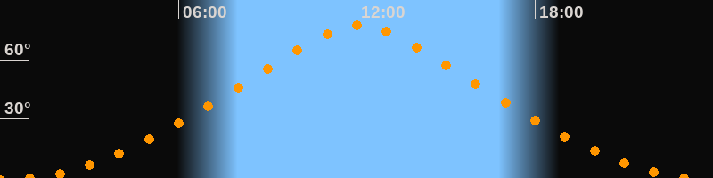 Höchster Stand (Kulmination)12:05 Uhr (h = 77,6°)