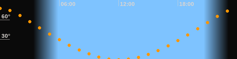 Höchster Stand (Kulmination)00:02 Uhr (h = 77,6°)