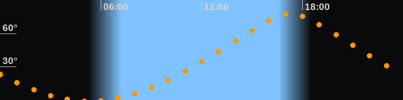 Höchster Stand (Kulmination)17:17 Uhr (h = 77,6°)