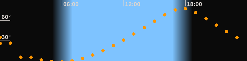 Höchster Stand (Kulmination)17:41 Uhr (h = 77,6°)