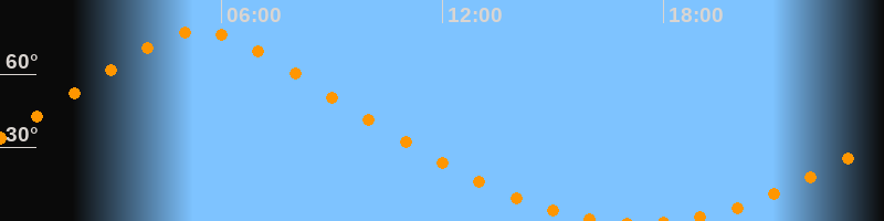 Höchster Stand (Kulmination)05:25 Uhr (h = 77,6°)