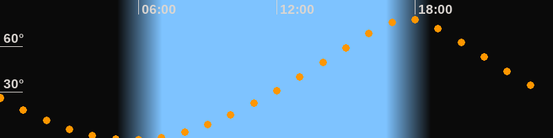 Höchster Stand (Kulmination)17:41 Uhr (h = 77,6°)