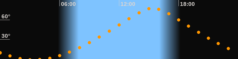 Höchster Stand (Kulmination)15:24 Uhr (h = 77,6°)