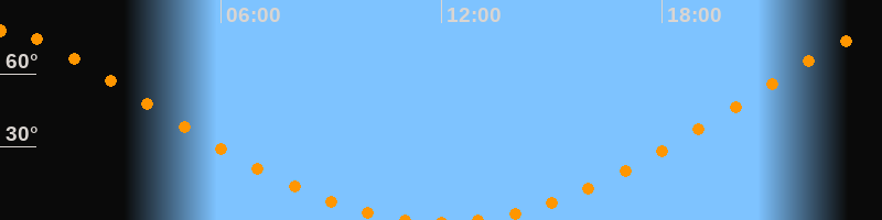 Höchster Stand (Kulmination)00:01 Uhr (h = 77,6°)