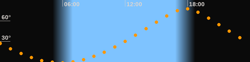 Höchster Stand (Kulmination)17:48 Uhr (h = 77,6°)