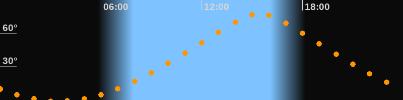 Höchster Stand (Kulmination)15:27 Uhr (h = 77,6°)