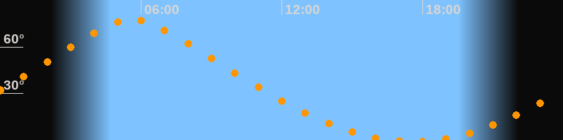 Höchster Stand (Kulmination)05:37 Uhr (h = 77,6°)